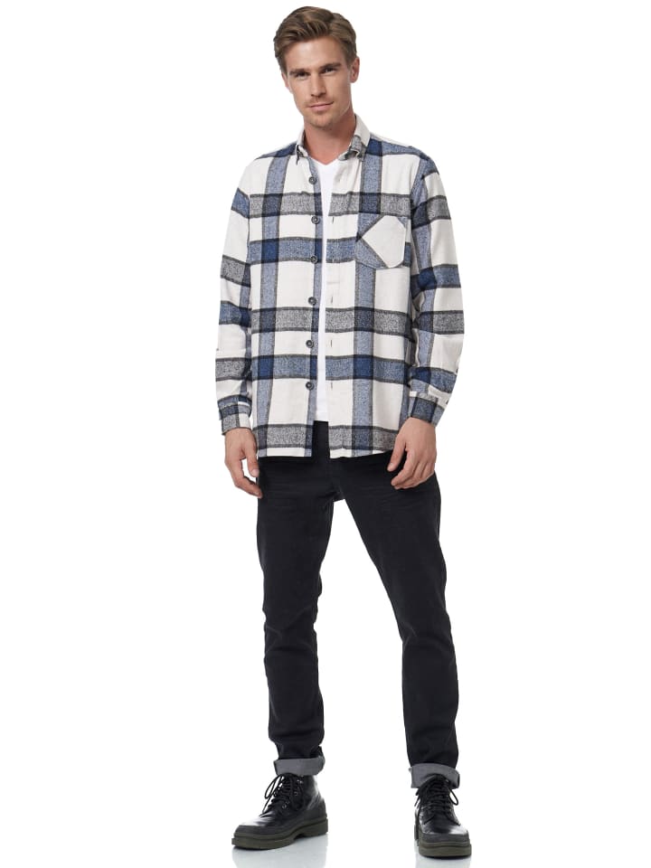 Рубашка дровосека фланелевая белого/синего цвета Rusty Neal