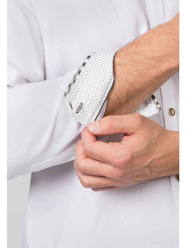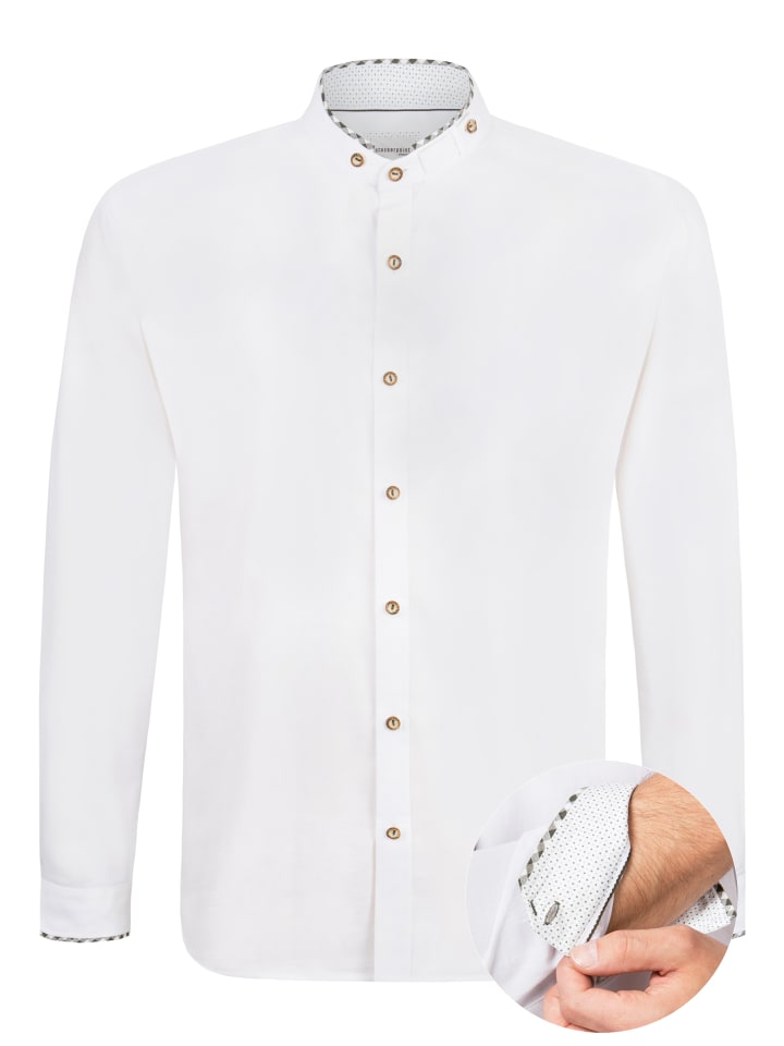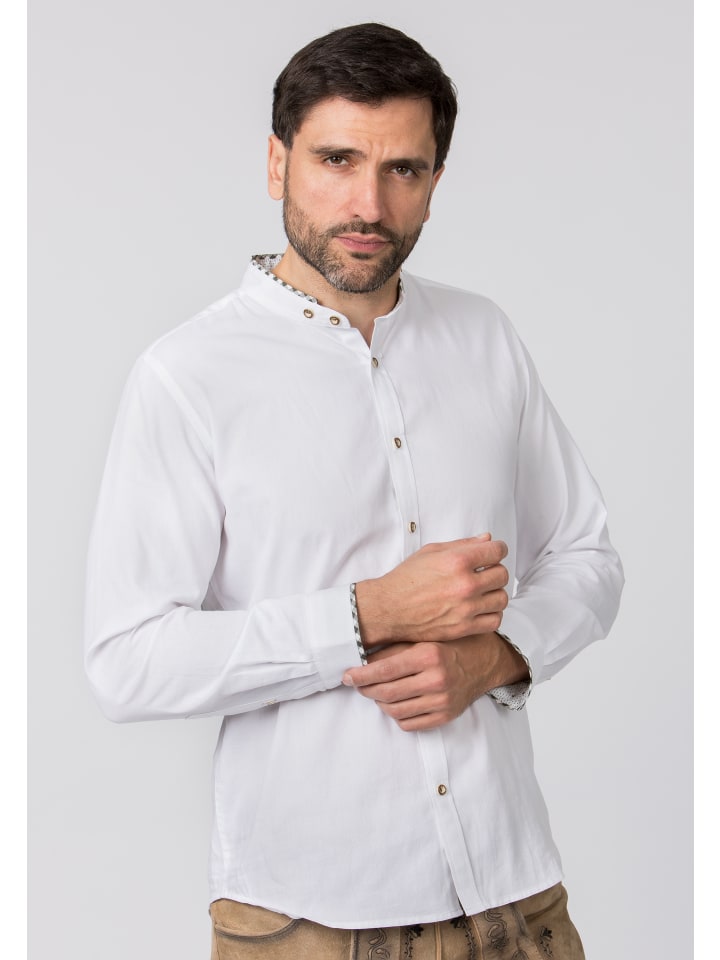 Традиционная рубашка Alexio от Stockerpoint Classics станет идеальным дополнением к стильному традиционному образу. Изготовленная из высококачественного хлопка, она впечатляет своим комфортом и элегантным внешним видом. Воротник-стойка придает рубашке современный вид, а такие изысканные детали, как цветная отделка внутренней стороны воротника, планка с пуговицами и внутренние манжеты, добавляют особый шарм. Изысканная отделка под кожу на внутренней стороне воротника подчеркивает высокое качество изготовления. Традиционные роговые пуговицы добавляют стильные акценты и делают рубашку универсальным аксессуаром. Благодаря удобному крою она идеально подходит для любого типа фигуры. Идеально сочетается с традиционными куртками, жилетами или ледерхозенами - идеально подходит для Октоберфеста, народных гуляний или элегантных случаев.