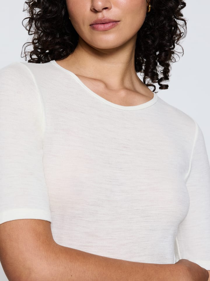 Этот топ с короткими рукавами и круглым вырезом - универсальная вещь, которую можно носить как отдельно, так и в составе многослойной одежды. Изготовлен из 100% мягкой, эластичной шерсти, он легкий, но теплый. Трубчатый крой обеспечивает удобную посадку. Произведено в Европе.