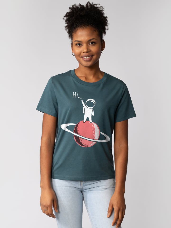 Футболка с круглым вырезом современного повседневного кроя для женщин. Эта футболка была произведена в справедливых условиях труда, имеет сертификат Fair Wear Foundation, а также GOTS (Глобальный стандарт органического текстиля, BCS 35828) и изготовлена из сертифицированного органического хлопка.