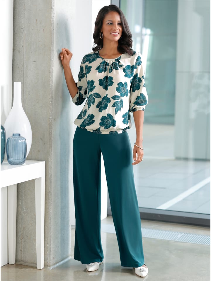 Наденьте их, чувствуйте себя комфортно и выглядите великолепно! Трикотажные брюки из удобной эластичной ткани, не требующей особого ухода. С удобным поясом на резинке и модными широкими штанинами. Длина брючины примерно 70 см.
