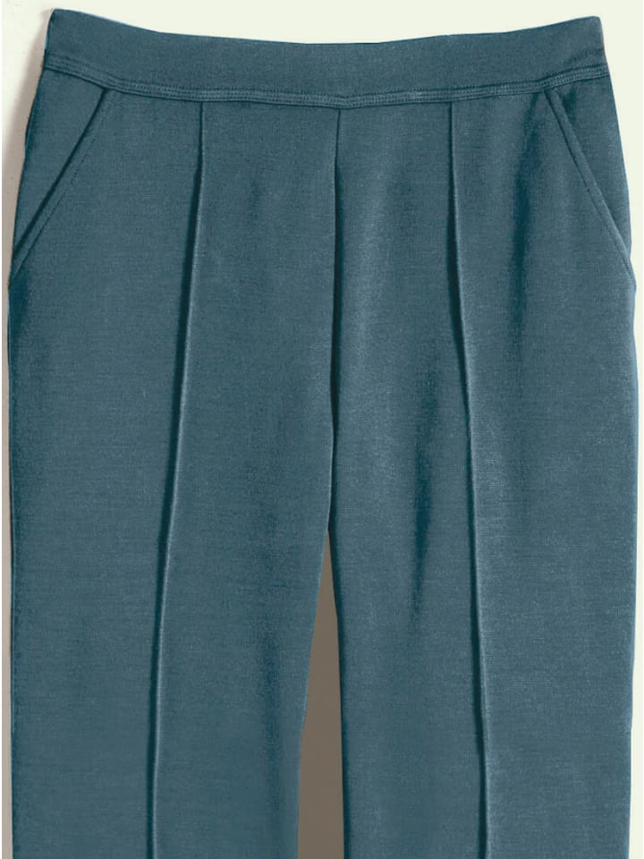 Женские брюки для отдыха из трикотажа с 2 карманами. Удобный эластичный пояс. Отделка отстрочкой.