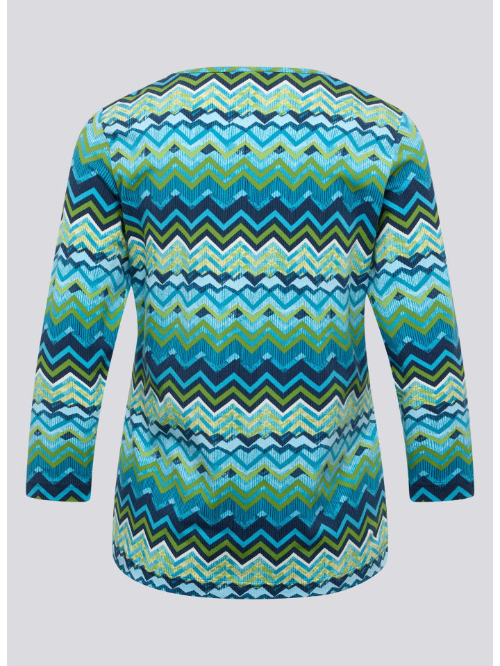 Эта рубашка добавит свежести и яркости вашему гардеробу благодаря красочному зигзагообразному узору. Классический круглый вырез горловины и рукава три четверти делают ее идеальным повседневным спутником. Изготовленная из эластичного хлопкового трикотажа, она обеспечивает комфортную носку и идеальную посадку - идеально подходит для сочетания с джинсами или простыми брюками. Яркий зигзагообразный узор. Круглый вырез горловины. Приятная мягкость и эластичность.