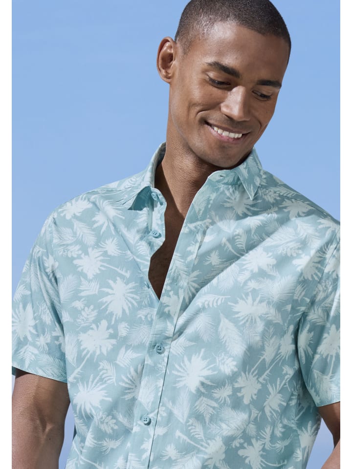 Повседневная рубашка Beachtime с короткими рукавами и пальмовым принтом в гавайском стиле. Стандартный воротник, кокетку сзади и закругленный подол. Идеально подходит для летнего отдыха. Высокий комфорт благодаря чистому хлопку.