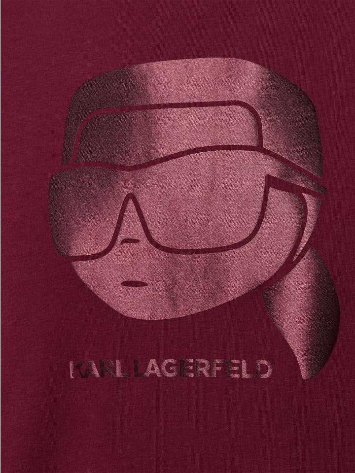 Эластичная футболка KARL LAGERFELD с мерцающим принтом спереди легко сочетает в себе удобство ношения и культовый дизайн.