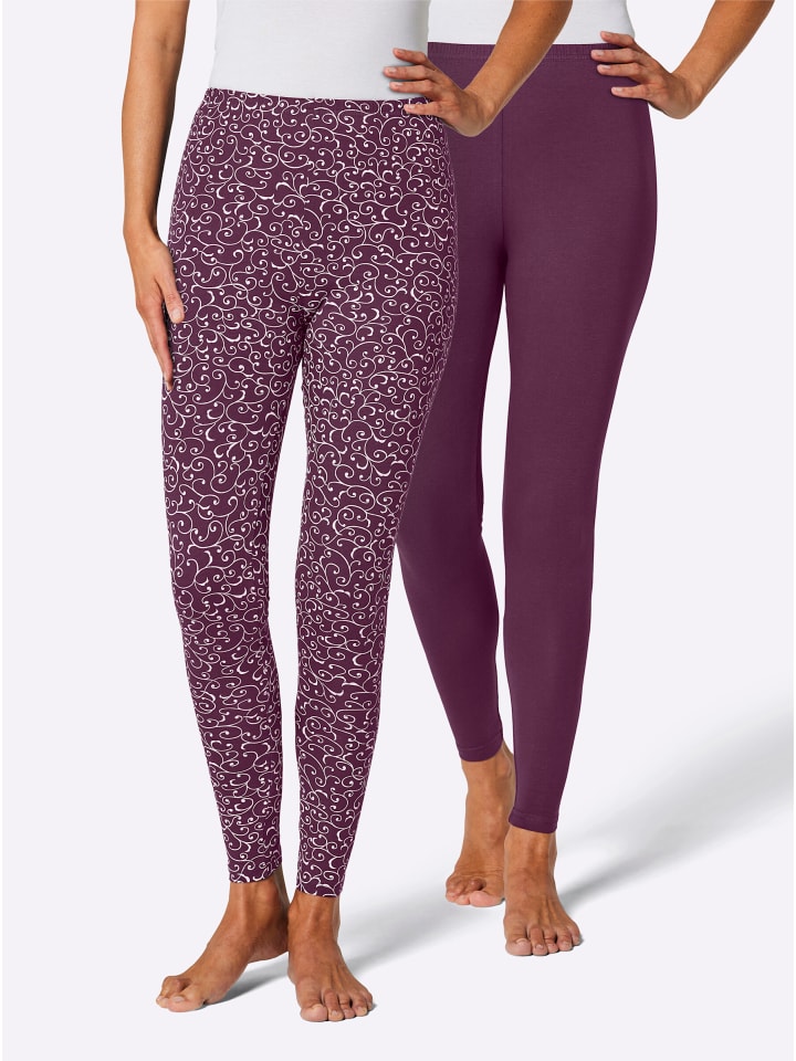 Упаковка 2 леггинсов: 1 однотонный, 1 с рисунком. Эластичный пояс для идеальной посадки. Приятный для кожи трикотаж.