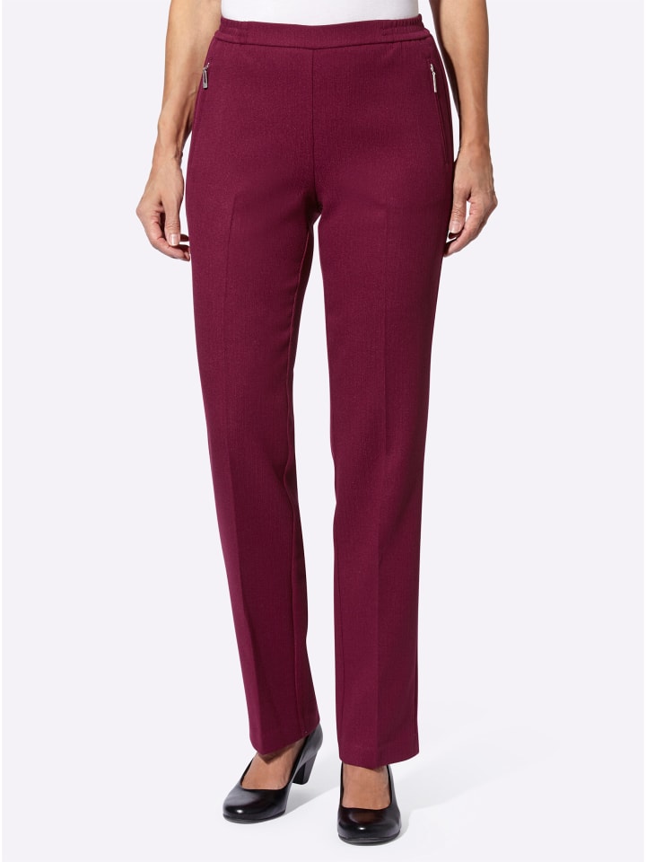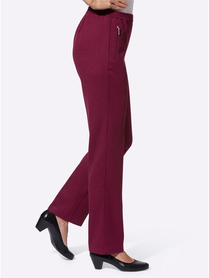 Брюки из ткани с легкой текстурой, не требующей особого ухода. С аккуратными стрелками. Практичный фасон, легко надеваемый, с удобным эластичным поясом. Два прорезных кармана на молнии. Разрезы для ног.
