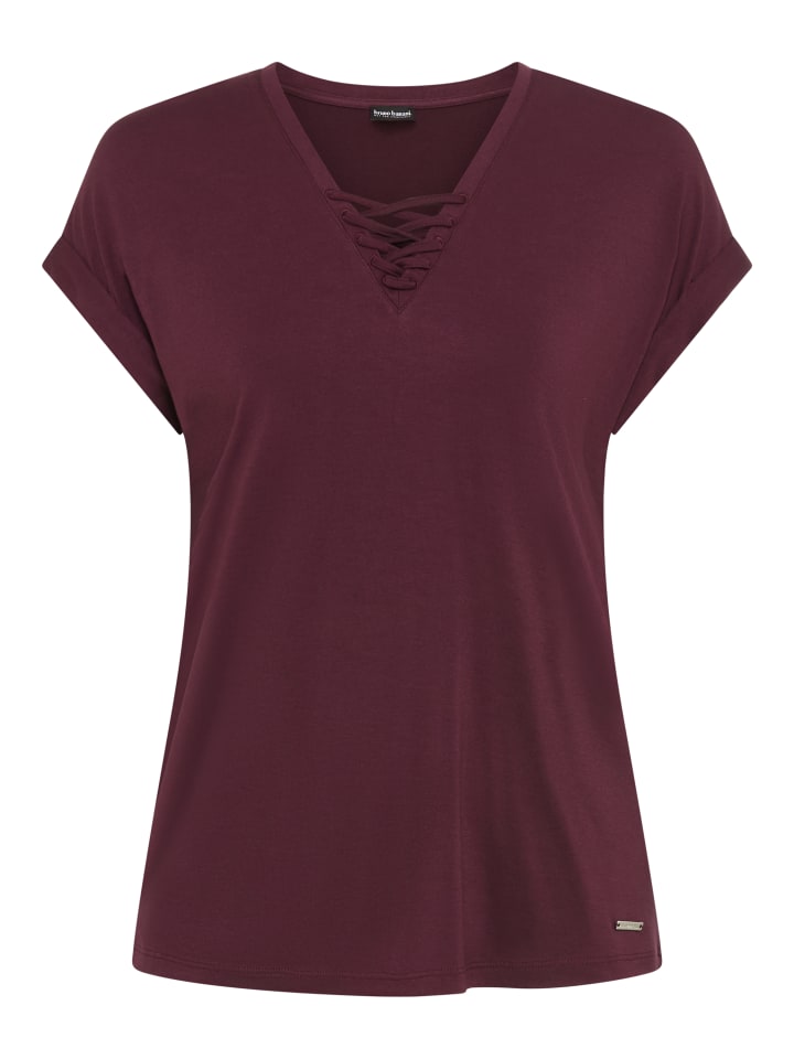 Универсальная женская футболка от Bruno Banani с эффектной шнуровкой. Длина до бедер, подчеркивающая фигуру, украшена стильными люверсами. Верх из гладкого трикотажа обеспечивает комфорт и свободу движений.