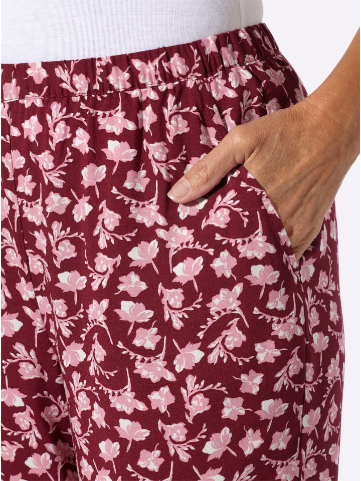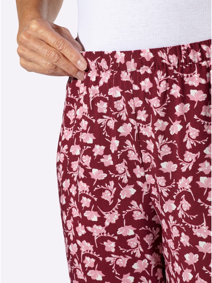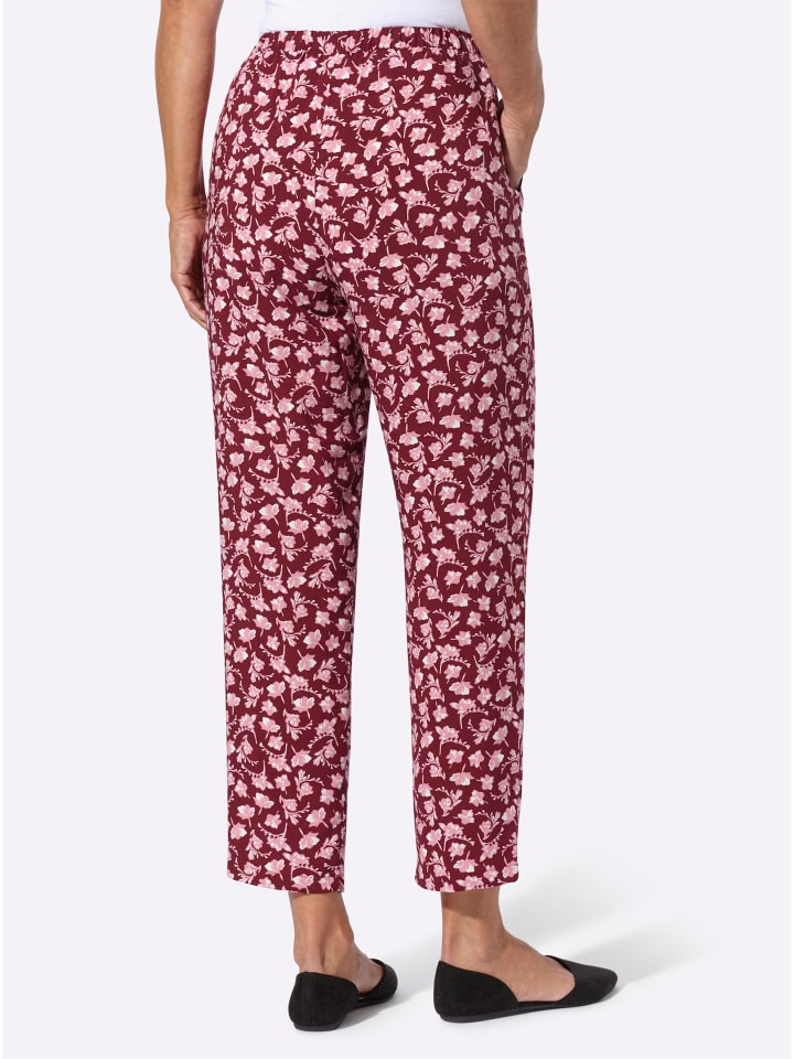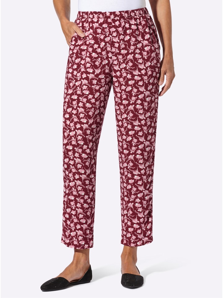 Модные и очень удобные: брюки длиной до щиколотки с внутренней резинкой на поясе и очаровательным цветочным рисунком по всей поверхности. Два передних кармана. Невероятно удобные в носке благодаря вискозе ECOVERO от Lenzing. Ширина брючины около 40 см.