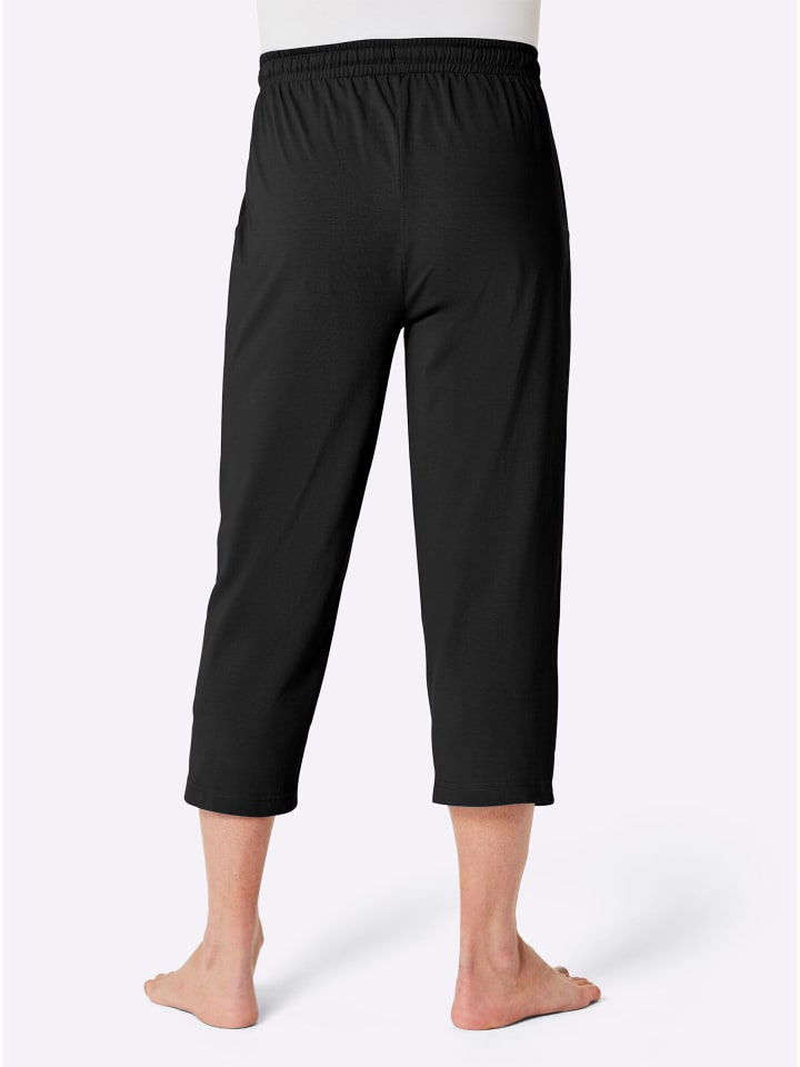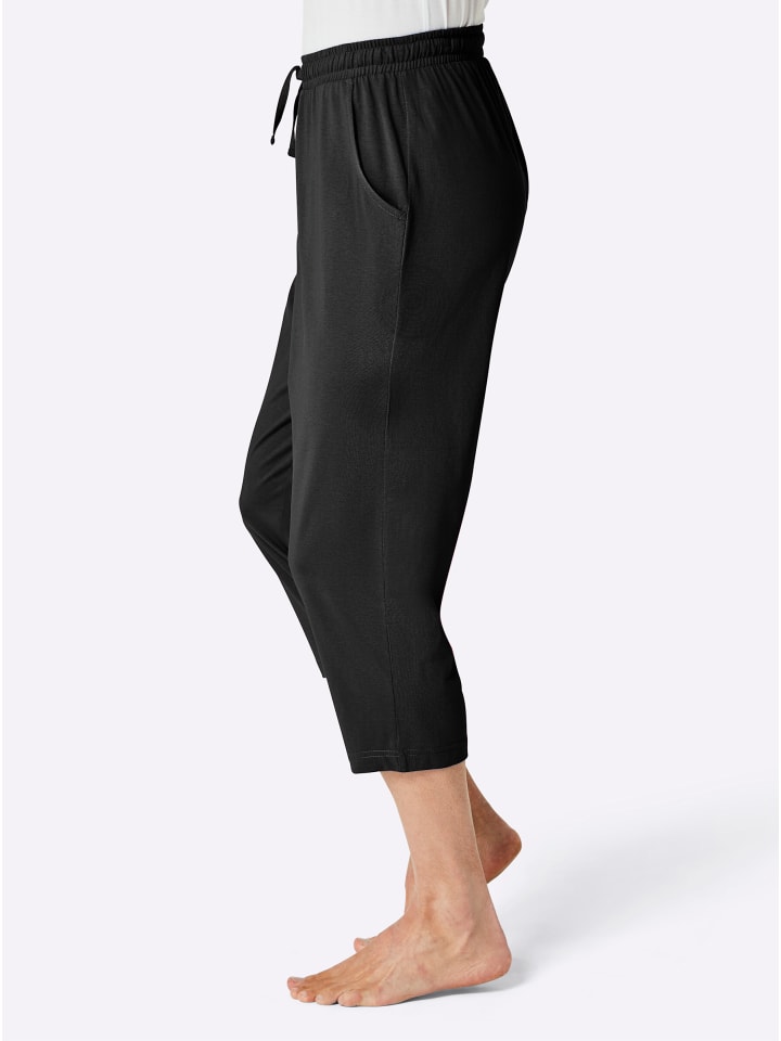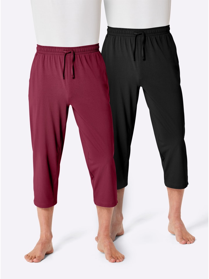 Эти брюки длиной 3/4 стильно смотрятся до щиколотки! Изготовлены из очень удобного трикотажного полотна Wäschepur, имеют регулируемую талию на шнурке и два боковых кармана. Два цвета в удобной упаковке!