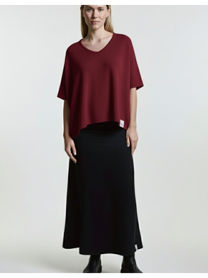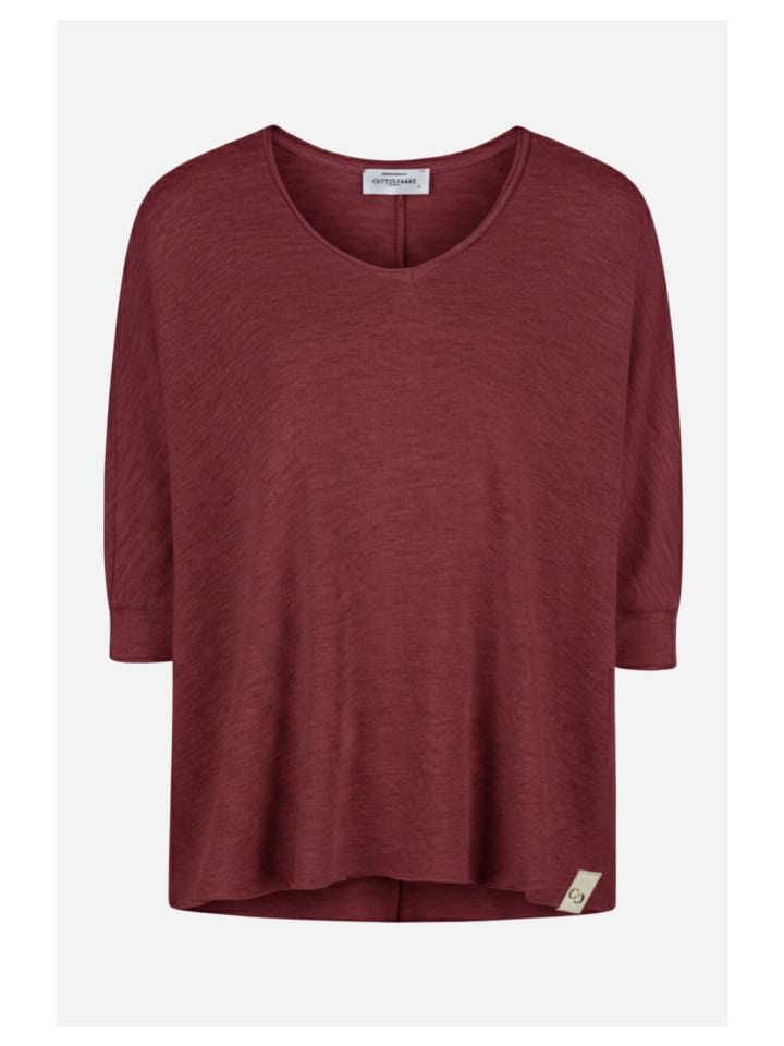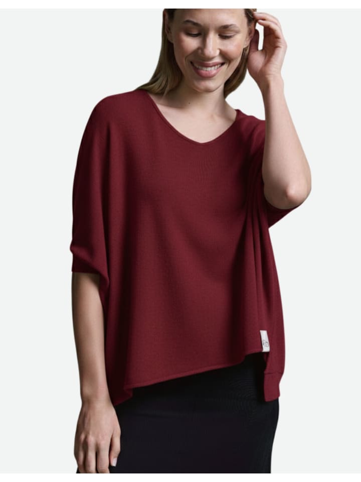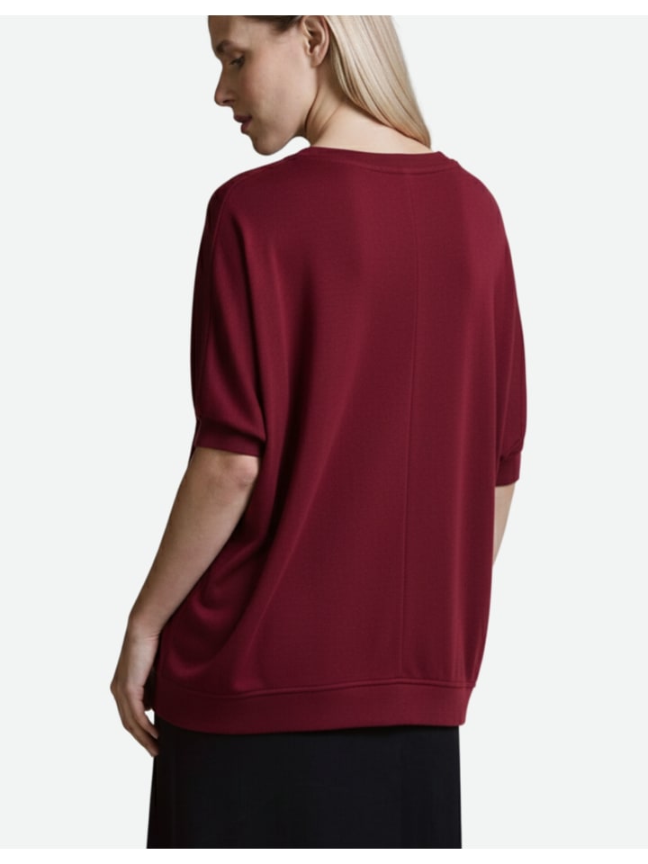 Этот свободный топ впечатляет своим современным непринужденным видом и исключительным комфортом. Свободный крой со спущенными плечами и V-образным вырезом создает привлекательный силуэт, идеально сочетаясь с самыми разными нарядами - от повседневных с джинсами и кроссовками до элегантных с юбкой и ботинками. Тонкая, мягкая ткань приятна к телу и обеспечивает максимальный комфорт.