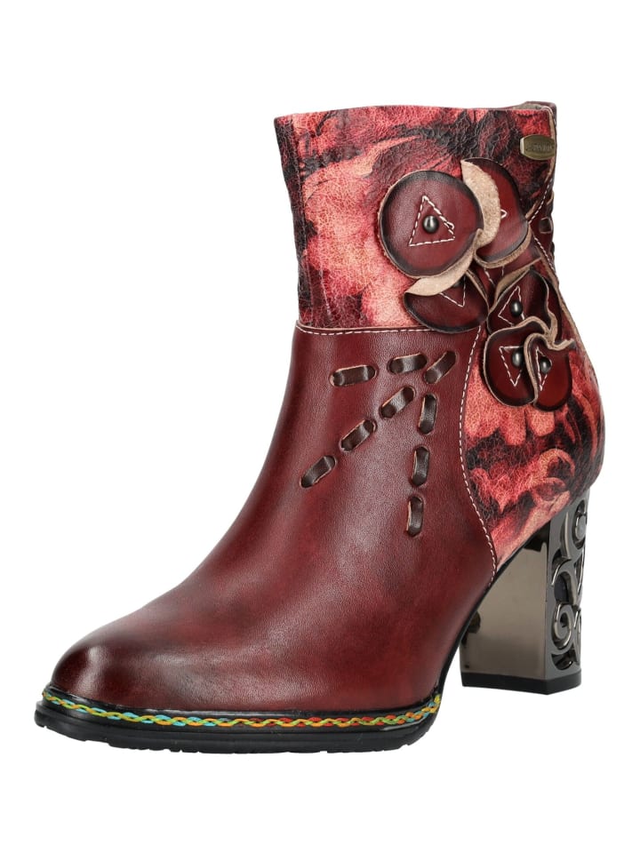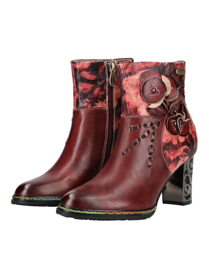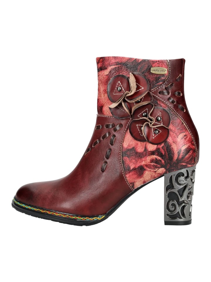 Эти стильные и элегантные ботильоны от Laura Vita с дополнительной молнией и высококачественной отделкой станут идеальным дополнением к любому случаю. Премиальный верх дополнен красивым цветочным узором и характерным каблуком. Интересное сочетание материалов добавляет особый шарм игривому дизайну. Так чего же вы ждете?