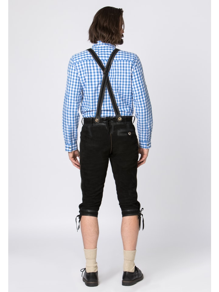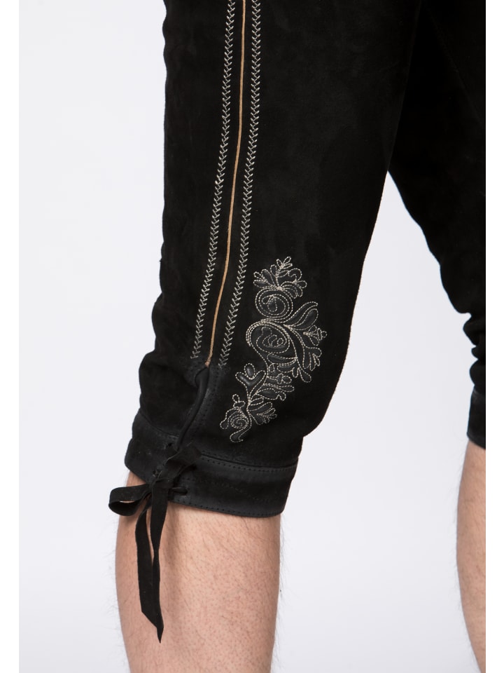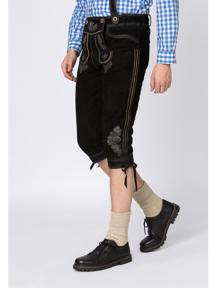 Традиционные кожаные бриджи Justin от Stockerpoint Classics. Эти кожаные бриджи длиной до колена, изготовленные из высококачественной дубленой замши с отделкой под олень, отличаются исключительной текстурой и идеально сочетаются с классическими роговыми пуговицами. Это самый популярный фасон бриджей длиной до колена. Изящная традиционная вышивка придает модели неповторимый характер. Шнуровка на талии и брючинах позволяет регулировать размер и точно подобрать посадку. Бриджи поставляются с подтяжками в комплекте. Они универсальны и прекрасно сочетаются со многими традиционными нарядами.