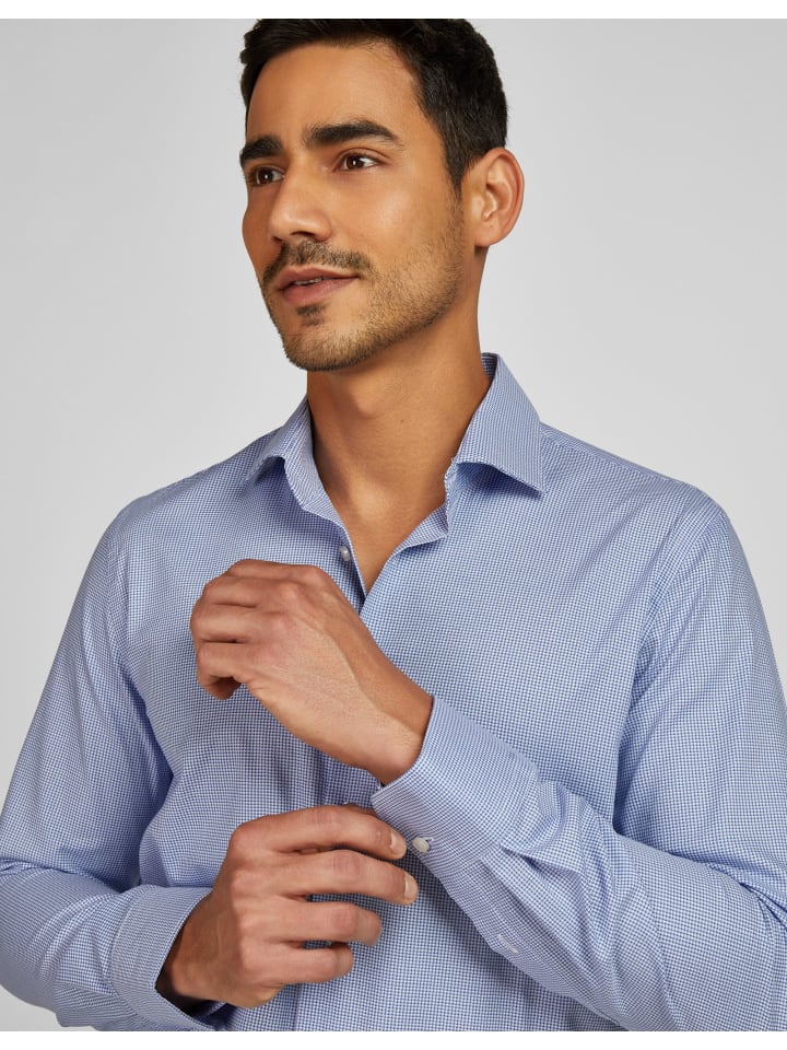 Ощутите современную элегантность с рубашкой HECHTER Paris. Изысканное каретное переплетение с мелким узором «гусиная лапка» придает дизайну особую изысканность. Отложной воротник подчеркивает универсальность рубашки, делая ее идеальным дополнением как к деловому, так и к элегантно-повседневному образу. Современный крой обеспечивает стройный силуэт и исключительный комфорт. Изготовленная в ЕС, она впечатляет своим превосходным качеством и тщательной отделкой.