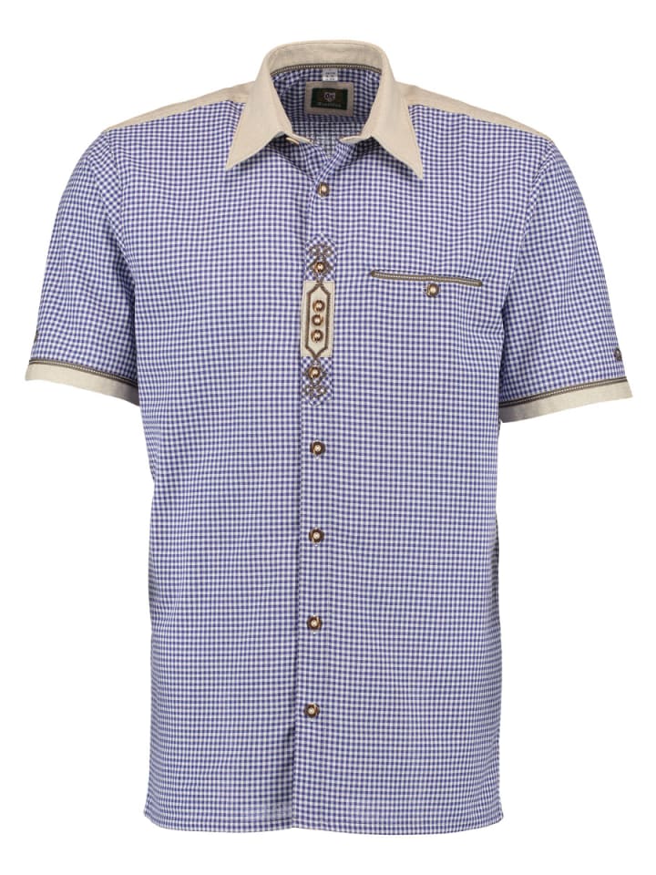 Традиционная рубашка с коротким рукавом от бренда «OS Trachten». Традиционная ткань в клетку «гингем» украшена изысканной вышивкой. Необычный контрастный материал на кокетке, воротнике и рукавах подчеркивает традиционный характер этой летней рубашки. Прорезной карман отделан специально изготовленной хлопковой тесьмой.