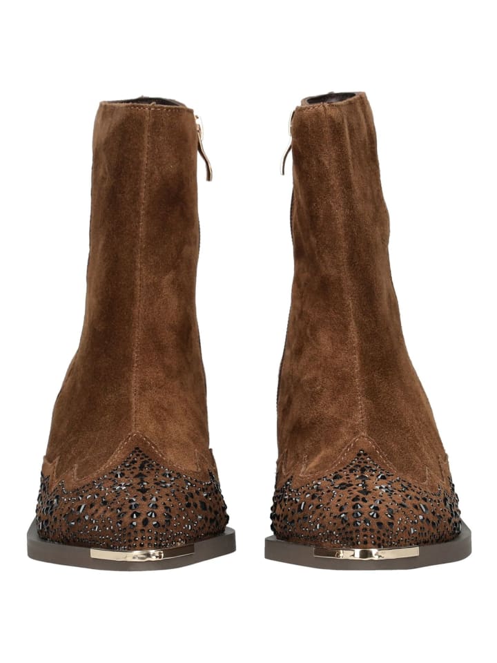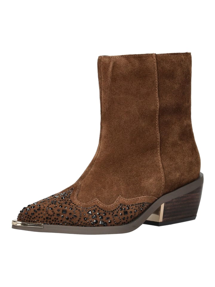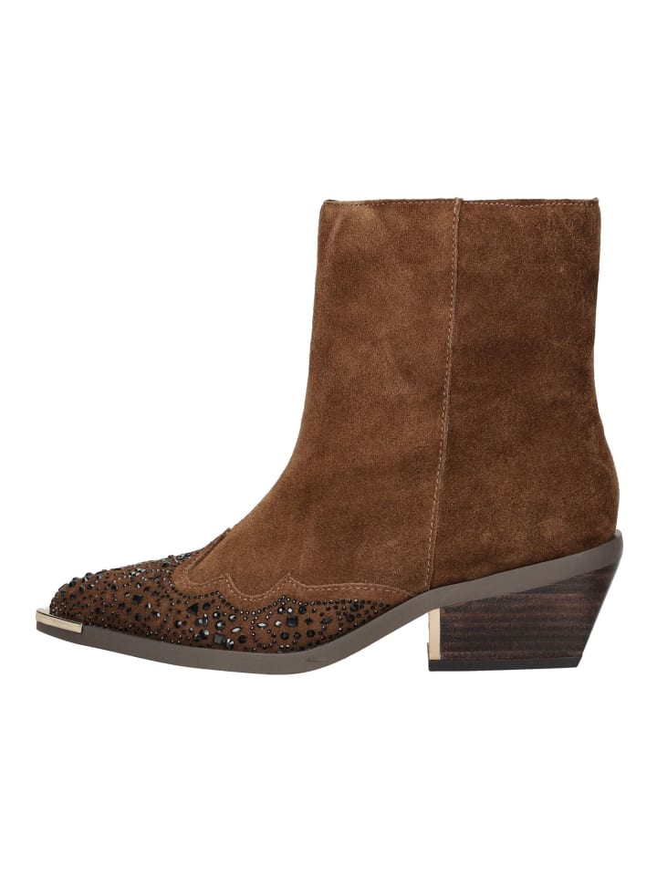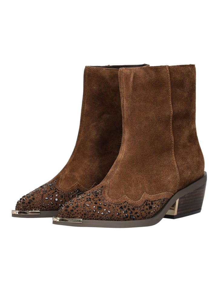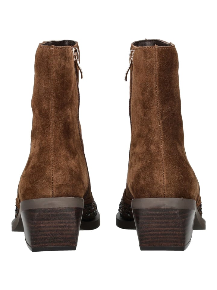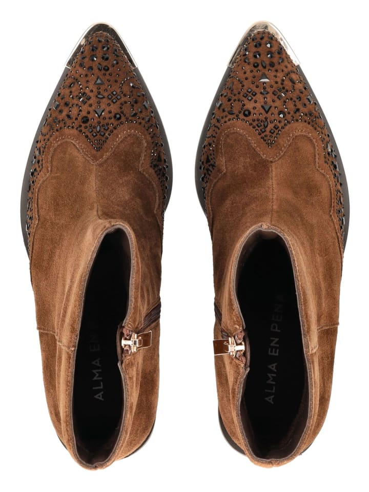 Эти модные ковбойские сапоги от ALMA EN PENA привносят современную нотку в ковбойский стиль для повседневной носки. Верх из замши с декоративными стразами придает обуви особый характер. Молния сбоку позволяет легко надевать и снимать сапоги. Прочный блочный каблук обеспечивает устойчивость и подчеркивает женственный силуэт. Универсальные и простые в уходе, эти сапоги идеально сочетаются как с джинсами, так и с платьями, добавляя модный штрих с непринужденным вестерном.