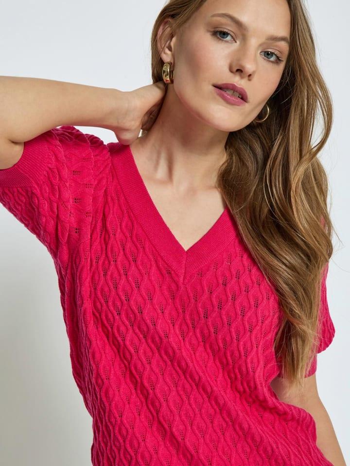 Футболка Rosalia с рукавами-буфами и V-образным вырезом - незаменимая вещь. Она изготовлена из высококачественной вискозы, полиэстера и нейлона. Красивый рисунок на футболке притягивает взгляд.