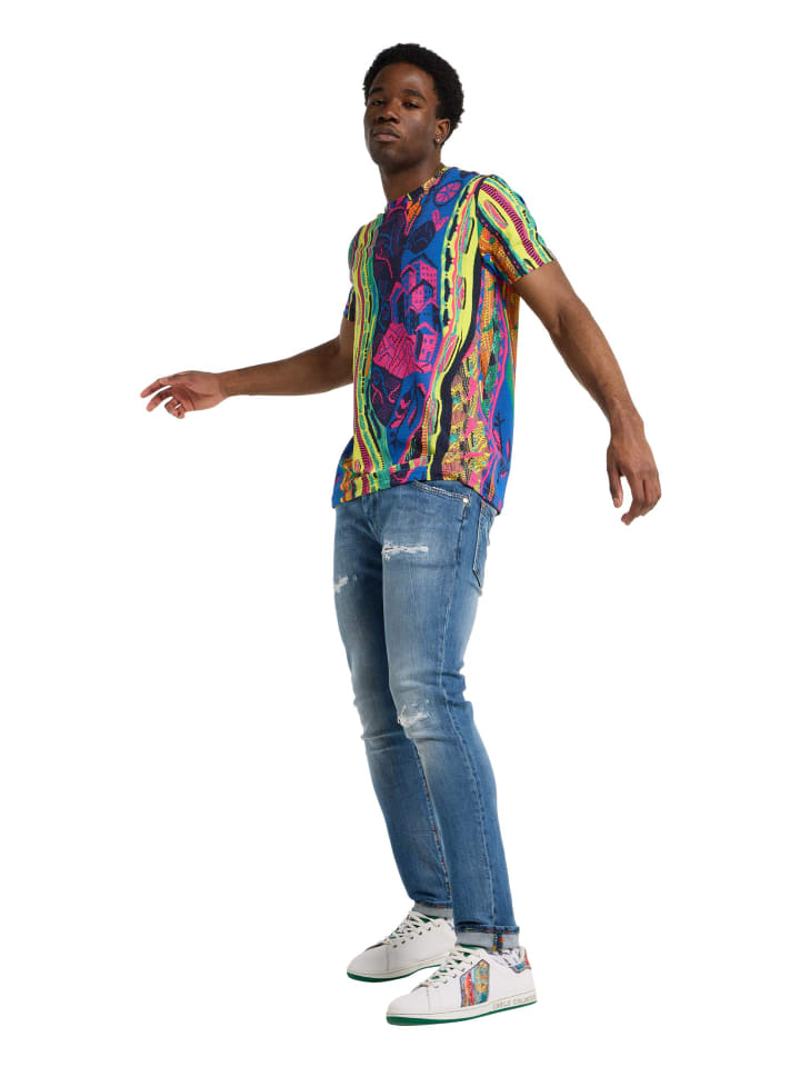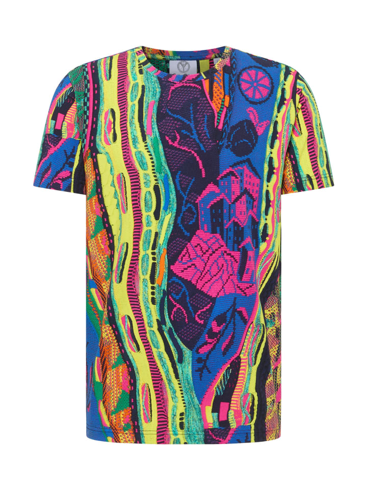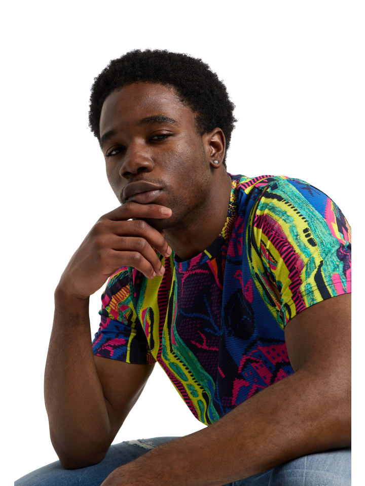 Футболка с трикотажным принтом сочетает в себе современный стиль и изысканность трикотажного кроя. Эксклюзивный трикотажный принт - центральный элемент этой футболки. Вдохновленный текстурой и эстетикой традиционных трикотажных узоров, принт придает футболке уникальный вид, одновременно непринужденный и элегантный. Эта футболка, которую можно носить как эффектный элемент с простыми брюками или как универсальную базовую вещь для создания креативных многослойных образов, украсит любой наряд.