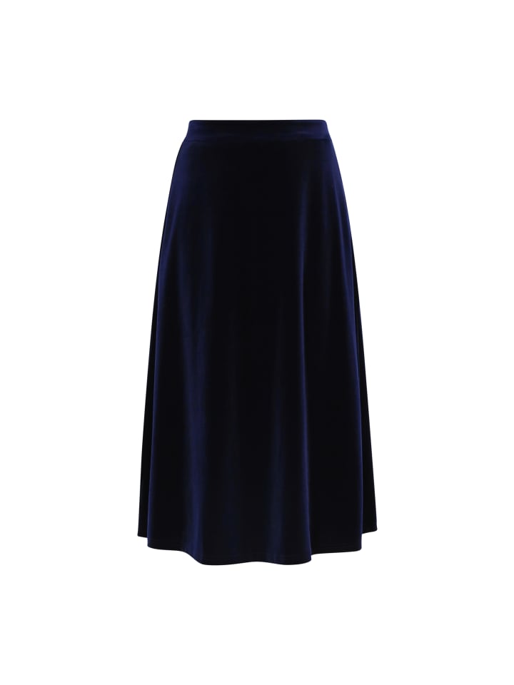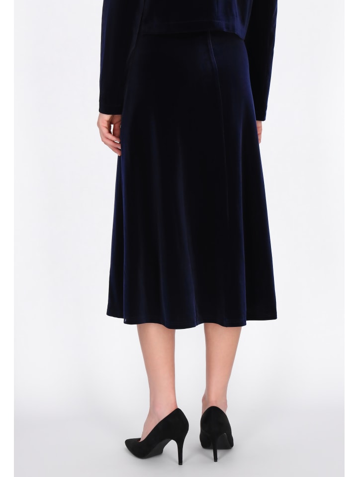 Элегантная юбка классического А-силуэта прямого кроя из коллекции Classic. Высокая талия красиво подчеркивает талию, а незаметная застежка-молния обеспечивает комфорт. Эта юбка миди из мягкого, роскошного бархата с гладким однотонным узором идеально подходит для особых случаев и повседневных образов, добавляя элегантности.