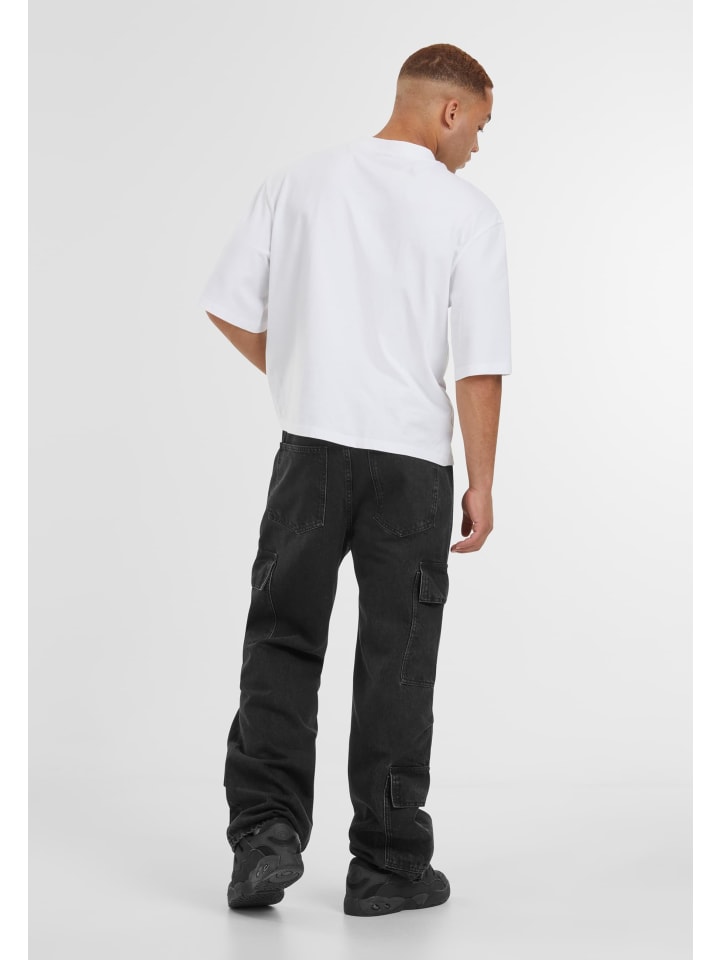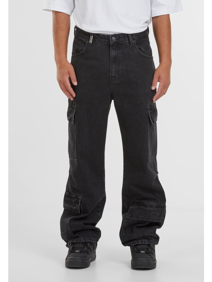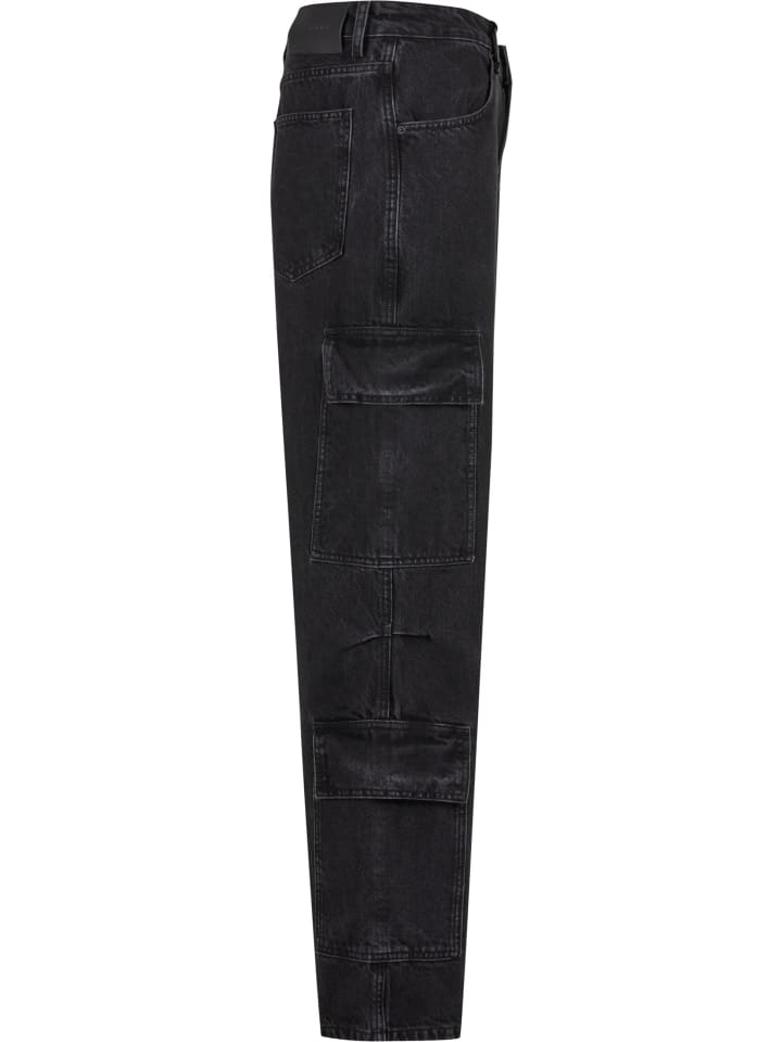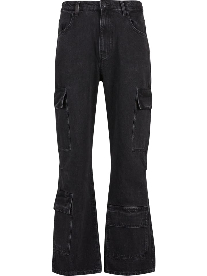 Джинсы Baggy & Loose с карманами-карго, идеально подходящие для повседневной носки и улицы, благодаря свободному крою и широким штанинам. Изготовленные из хлопкового денима, эти джинсы прочные, но удобные, со средней посадкой, создают легкий и непринужденный силуэт. Модель застегивается на пуговицу и молнию, имеет классические передние карманы и характерные накладные карманы с клапанами на бедрах и голенях, сочетая функциональность и структуру. Стандартный подол свободно спускается по обуви, обеспечивая свободу движений, а тонкие швы стабилизируют форму и подчеркивают городской, повседневный характер стиля.