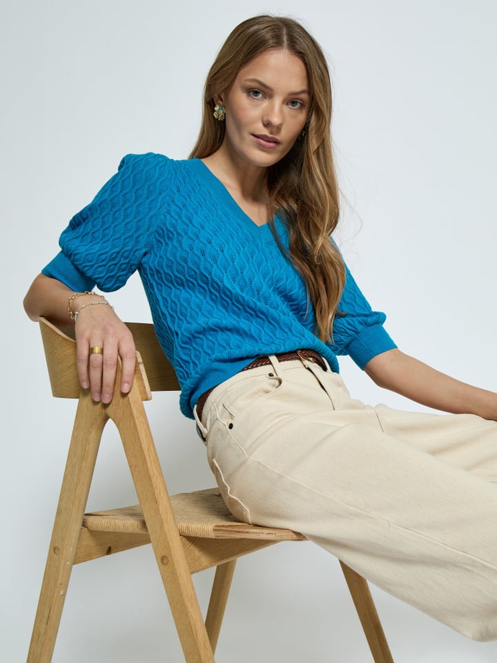 Футболка Rosalia с рукавами-буфами и V-образным вырезом - незаменимая вещь. Она изготовлена из высококачественной вискозы, полиэстера и нейлона. Красивый рисунок на футболке притягивает взгляд.