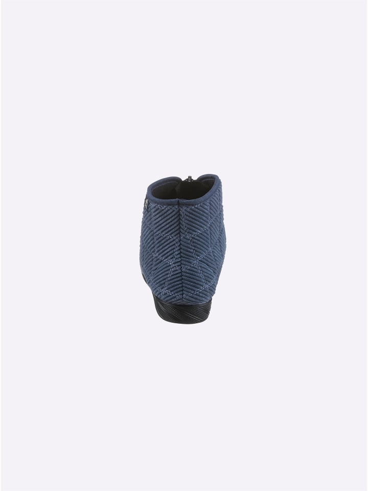 Тапочки с модной ромбовидной стежкой. Молния спереди позволяет легко надевать и снимать их, а также позволяет широко расстегнуть. Резиновая подошва, каблук около 20 мм. Ширина G.
