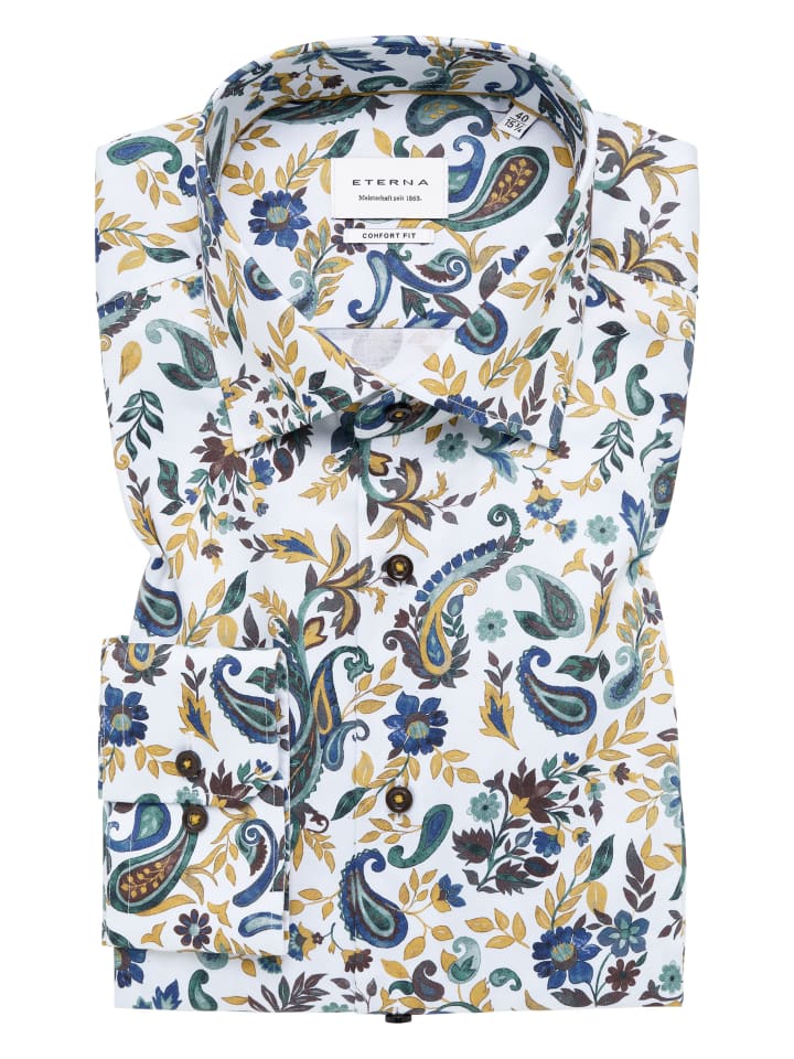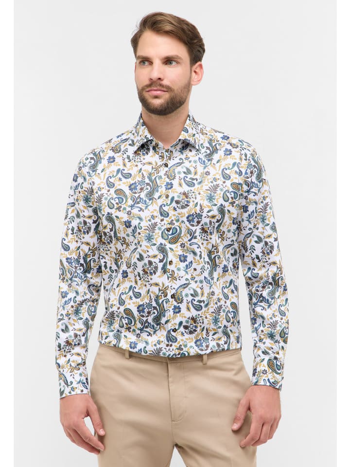 Ощутите комфорт и стиль в этой мужской рубашке ETERNA с классическим воротником Kent. Эта рубашка с длинными рукавами выполнена из высококачественного саржевого переплетения из 100% хлопка и обеспечивает удобную посадку.