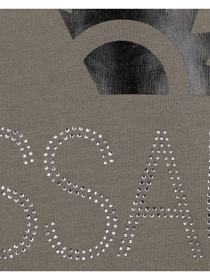 Эта футболка украшена привлекательными надписями на груди и спине.
