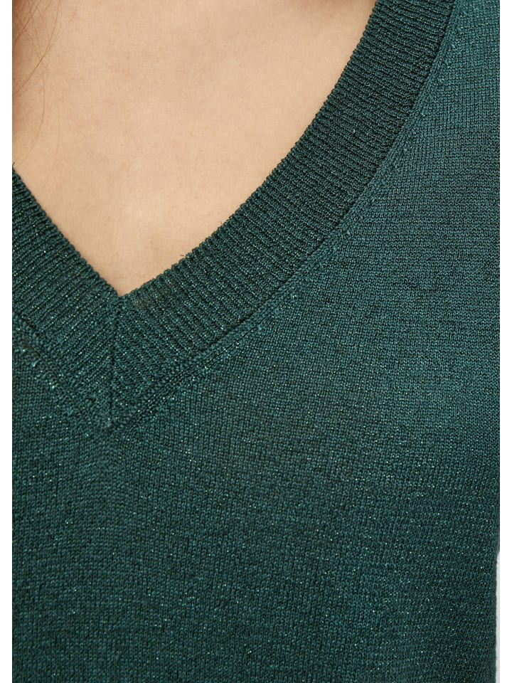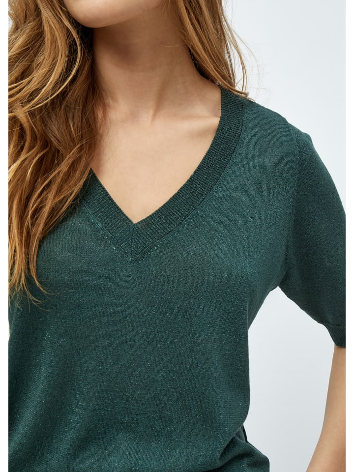 Футболка Milla изготовлена из смеси Eco Vero, экологичной альтернативы вискозе, и металлизированных волокон, что придает ей мягкость и легкость. Металлизированные волокна обеспечивают глянцевый блеск. Футболка имеет V-образный вырез, рукава средней длины и ребристые края.