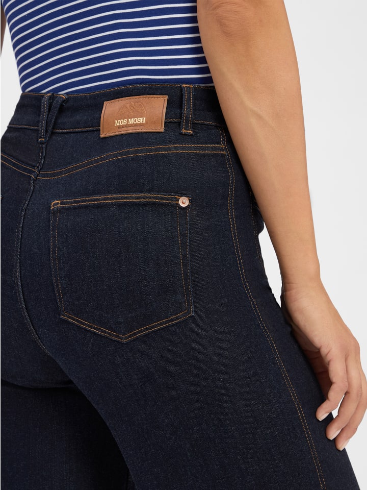 Такие удобные, такие стильные: эластичные джинсы MMColette Deluxe от MOS MOSH, изготовленные из смеси вискозы и хлопка, впечатляют широкими штанинами и эффектными швами.