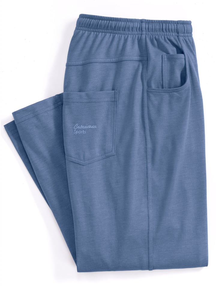 Брюки для отдыха с элегантным внешним видом благодаря отстроченной окантовке. Талия на шнурке и удобном эластичном поясе. Два боковых кармана, включая один для монет, и один задний карман.