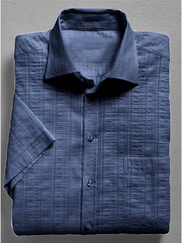 Рубашка из сирсакера с превосходной воздухопроницаемостью. С воротником Kent и закругленным подолом. Кроме того: она совершенно не мнется.