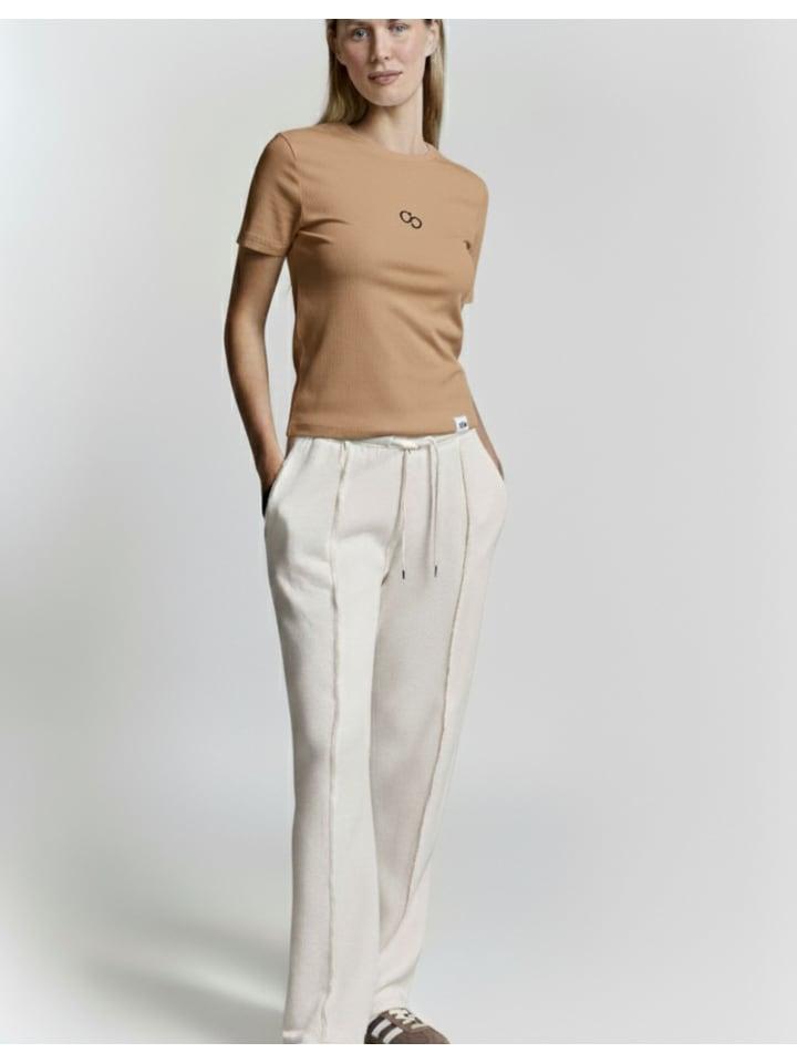 Эта футболка в рубчик - стильная базовая модель с современным акцентом. Приталенный крой создает женственный силуэт, а классический круглый вырез горловины подчеркивает вневременную непринужденность. Изюминкой является небольшая вышивка логотипа на груди, которая добавляет элегантный акцент минималистичному дизайну. Мягкий ребристый материал приятен на ощупь и обеспечивает исключительный комфорт. Универсальная и удобная в использовании - носите ее с джинсами, с юбкой или в качестве элегантного многослойного наряда под трикотажем или блейзером - эта футболка станет незаменимой вещью в любом гардеробе.