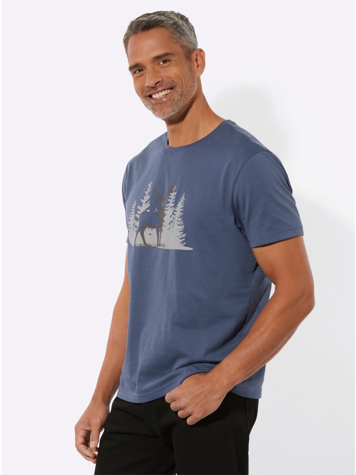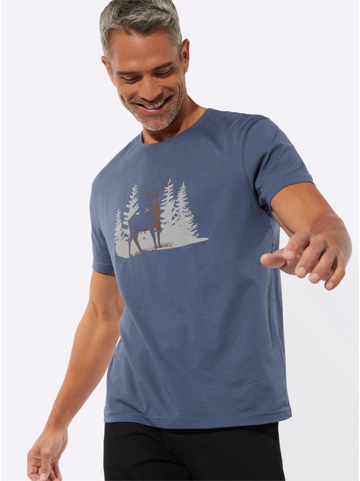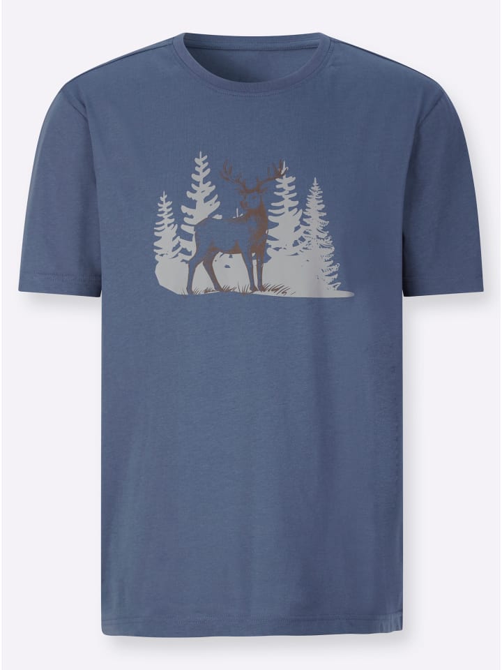 Рубашка с изображением оленя спереди. Круглый вырез и короткие рукава.