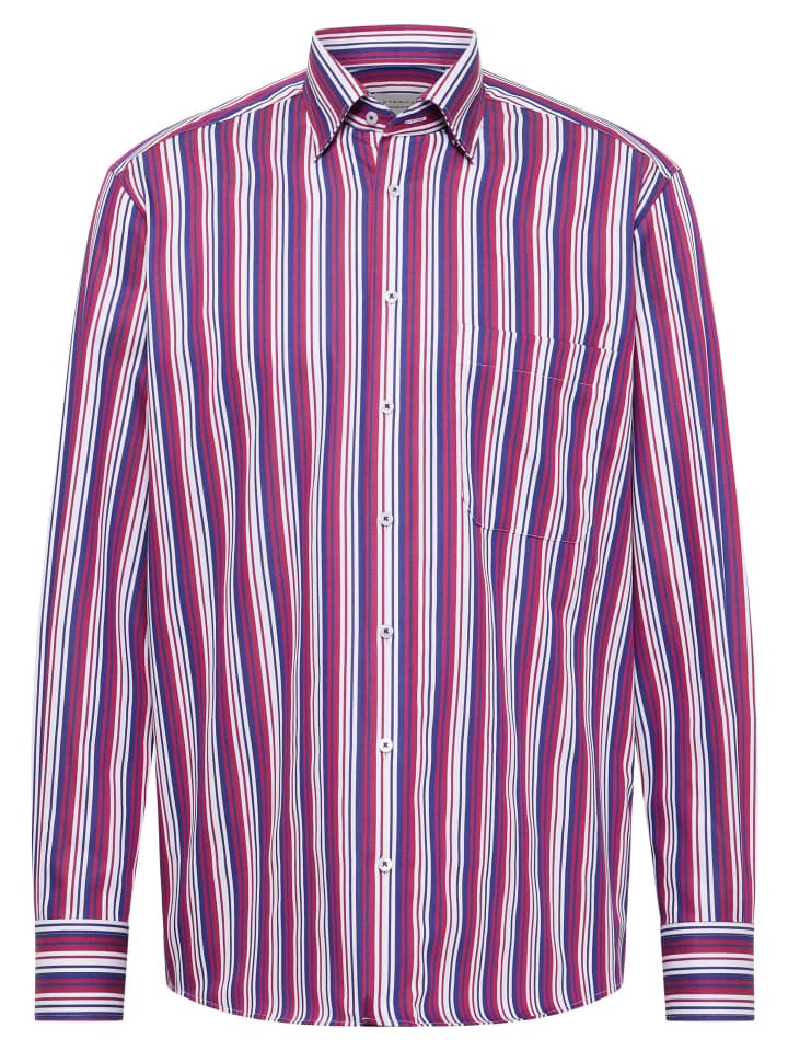 Современный воротник под пуговицами и нагрудный карман гармонично дополняют внешний вид этой рубашки комфортного кроя.