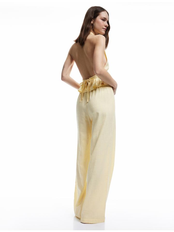 Эти брюки широкого кроя из вискозной смеси сочетают в себе комфорт и стиль. Благодаря эластичному поясу и практичному шнурку они идеально подходят для отдыха. Простой дизайн позволяет создавать универсальные комбинации, идеально подходящие для отдыха или офиса. Наслаждайтесь легкостью и современным видом этих брюк.