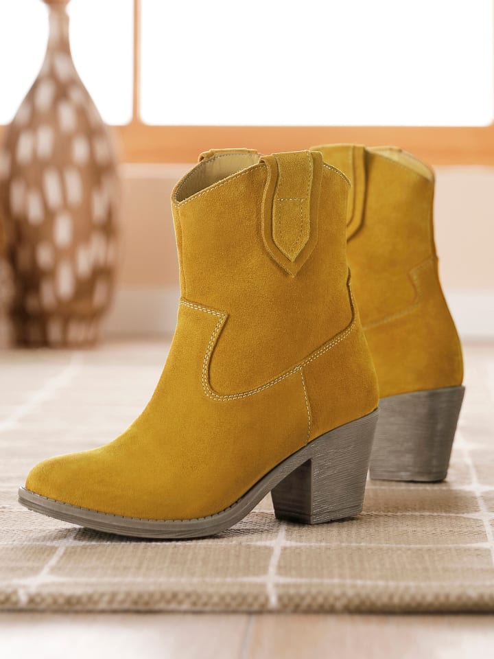 Ботинки из высококачественной коровьей замши. Подкладка и стелька: кожа и текстиль. Размеры голенища (В/Ш): примерно 12,5 x 28 см. Каблук ковбойский, высота примерно 45 мм.