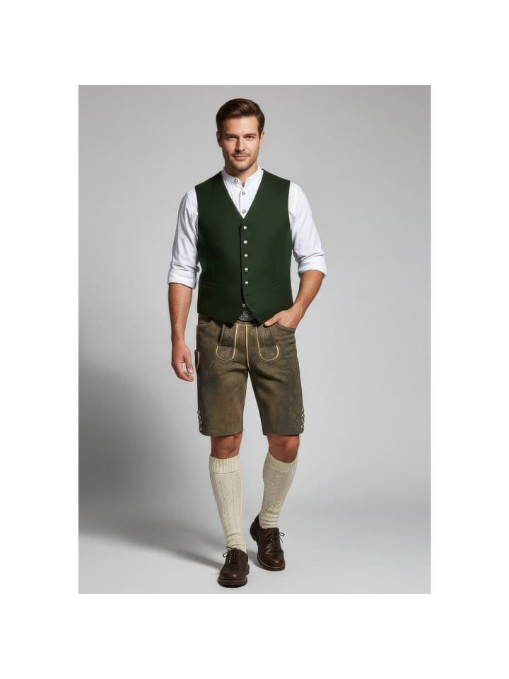 Кожаные брюки Denis от Krüger - абсолютный маст-хэв на Октоберфесте. Мягкая, эластичная кожа с изящной вышивкой на бедрах и нагруднике делает их настоящей приманкой для глаз. Еще одна изюминка - пряжка ремня с замысловатым декором. Ластовица сзади позволяет легко отрегулировать брюки по обхвату талии. Стильные роговые пуговицы на нагруднике и штанинах идеально дополняют эти элегантные кожаные брюки. Сзади также есть карман для кошелька. На правой штанине вы найдете небольшой карман для мелочей, например, мелочи. Эти кожаные брюки сочетают в себе традиционное мастерство с практичными деталями и станут настоящей приманкой для глаз на Октоберфесте. - Мягкая и эластичная кожа - Брюки с ремнем - Изысканная вышивка - Ластовица на поясе для легкой регулировки по обхвату талии - Задний карман для кошелька. Материал: 100% кожа