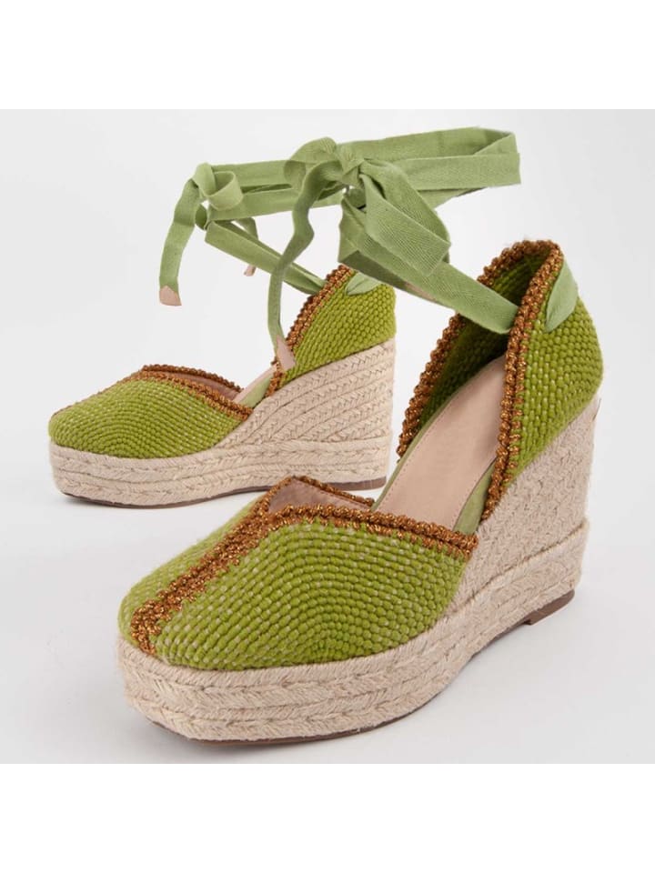 Женские эспадрильи с компенсацией. Стелька из 100% натуральной кожи. Удобная посадка. Изготовлены другими брендами для нашего бренда. Примерные размеры: выступ 8 см и пластина 2 см.