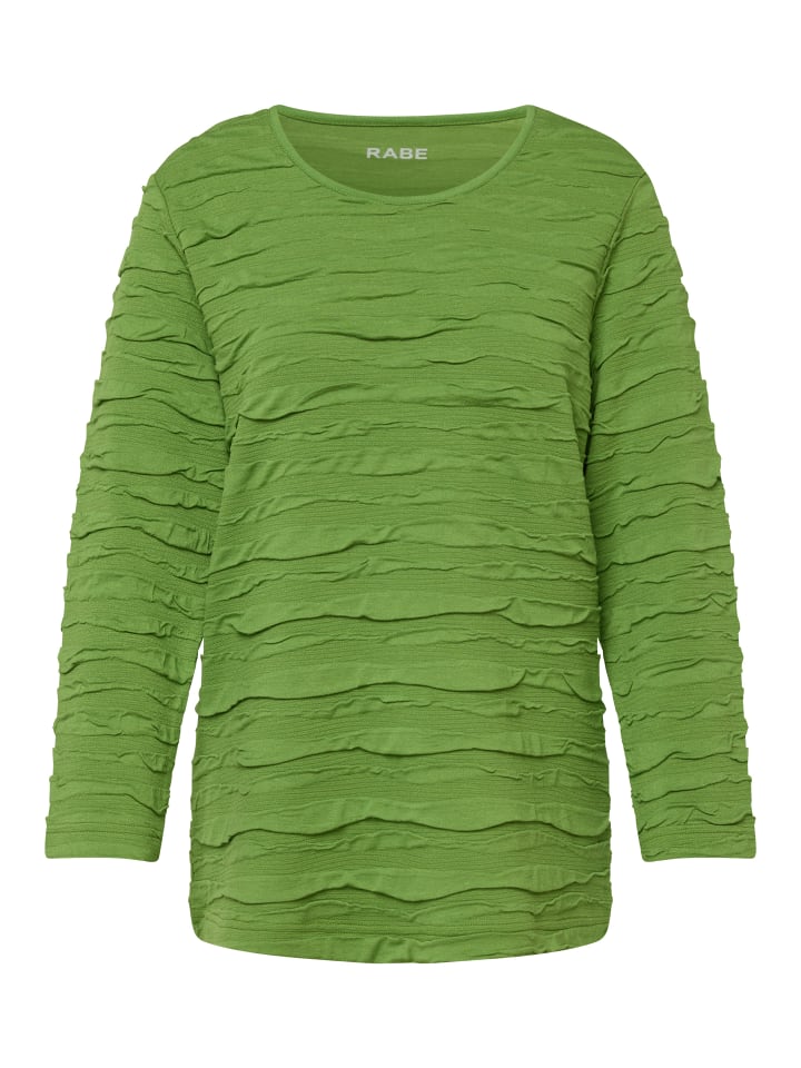 Эта элегантная рубашка впечатляет своей яркой волнообразной текстурой, обеспечивая исключительный комфорт. Эластичная ткань обеспечивает удобную посадку. Свободный прямой крой. Практичная длина рукава 3/4. Идеально сочетается с джинсами и юбками.