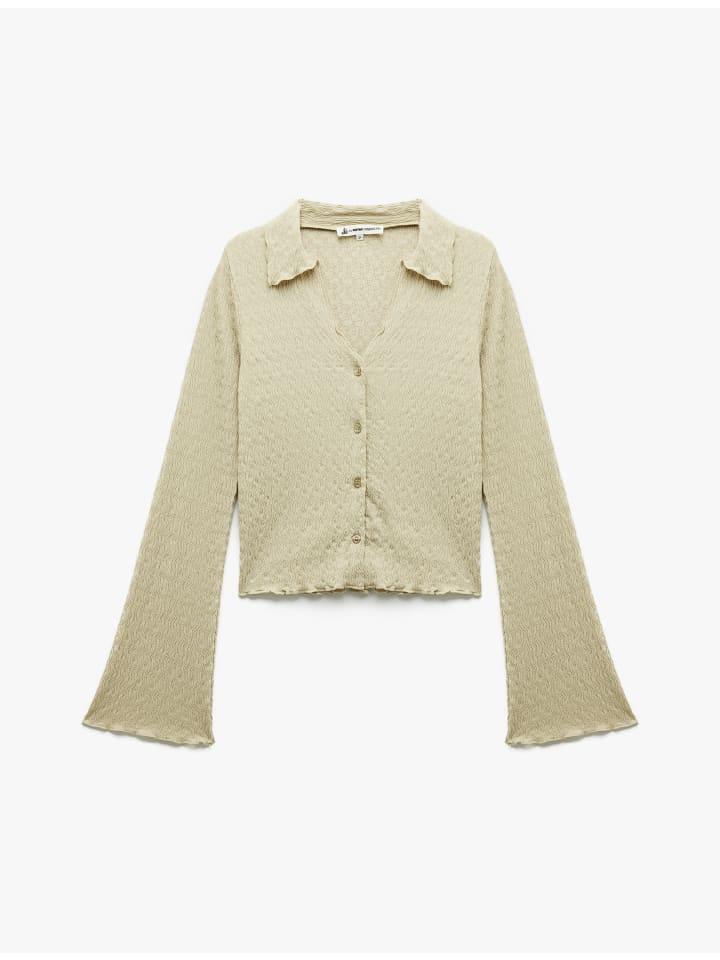 Ощутите классическое очарование этой элегантной жатой рубашки с длинными рукавами. Приталенный крой и классический воротник создают стильный силуэт, дополненный планкой на пуговицах и расклешенными рукавами. Эта рубашка идеально подходит как для официальных мероприятий, так и для непринужденных повседневных образов, это универсальный must-have для вашего гардероба.