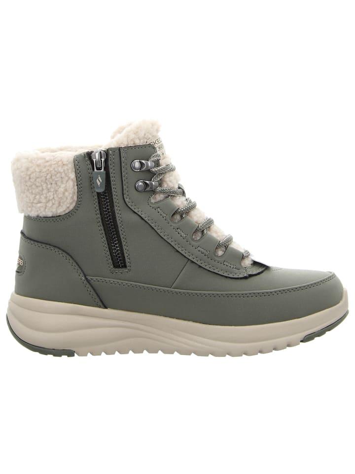 Женские утепленные ботильоны SKECHERS ON-THE-GO STELLAR со шнуровкой, зеленого цвета. Стелька Ultra Go, танкетка.