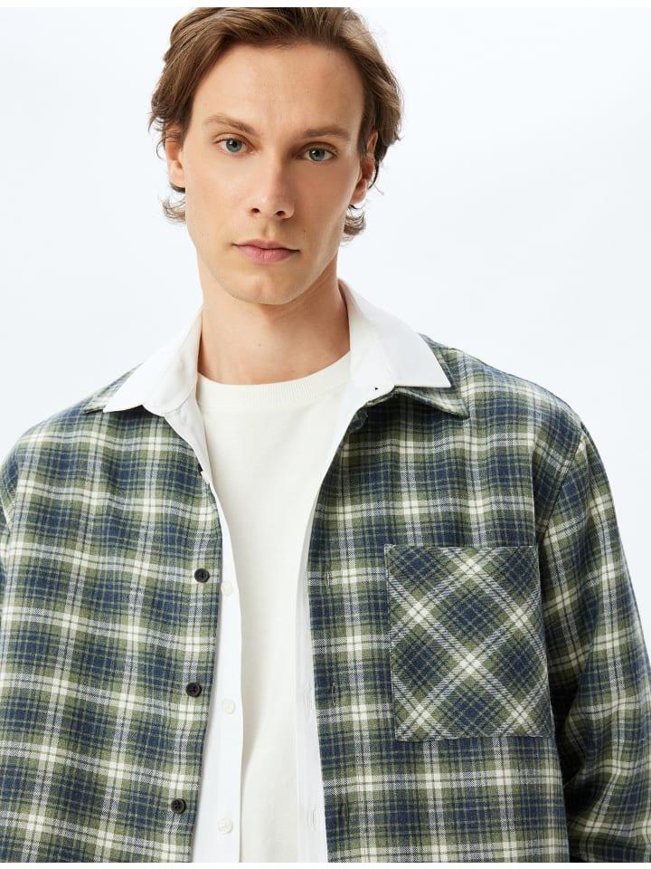 Обновленная модель|С пуговицами|Без печати/вышивки|В клетку|Обычная модель|Обычная модель|Один накладной карман|Стандартная длина|Длинные рукава|Отложной воротник|Рубашка