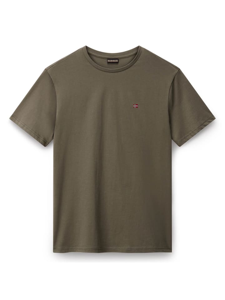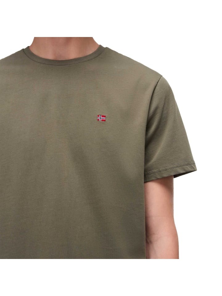 Мужская футболка NAPAPIJRI. Простая рубашка с короткими рукавами, маленьким флажком на груди и круглым вырезом. Футболка SALIS из чистого хлопка.
