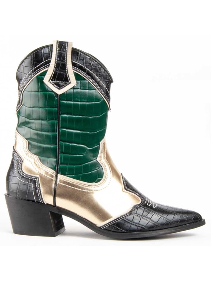 Женские ковбойские ботильоны на каблуке. Удобная посадка. Изготовлены из веганских материалов. Производятся другими брендами для нашего бренда.