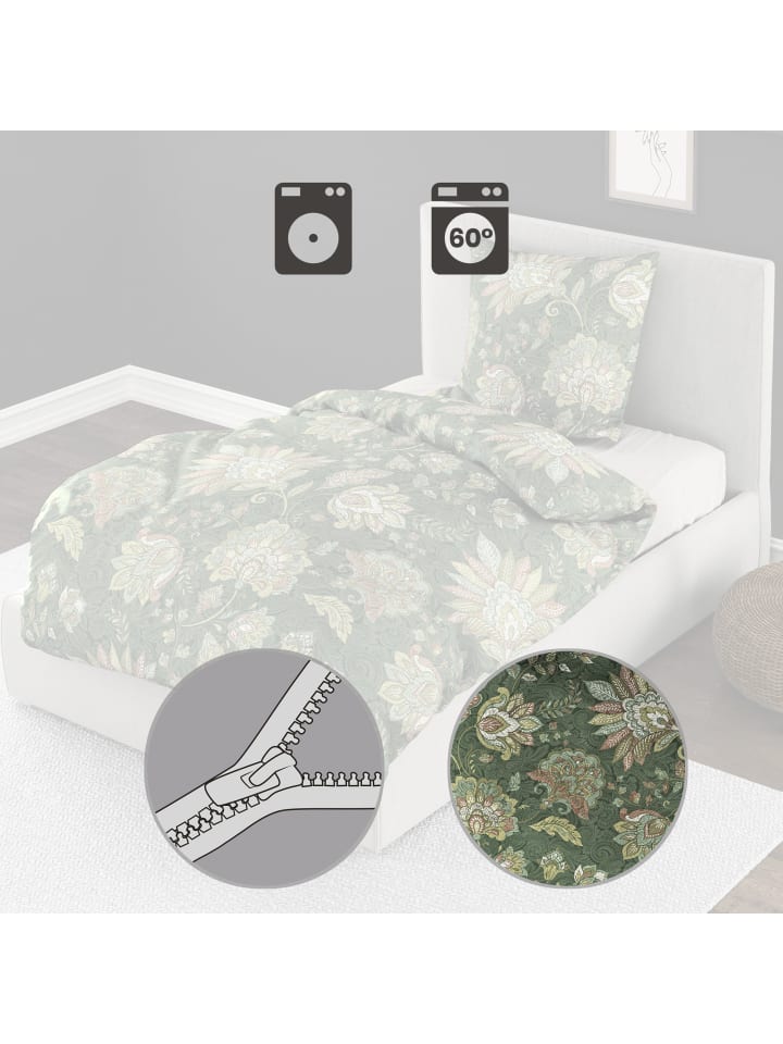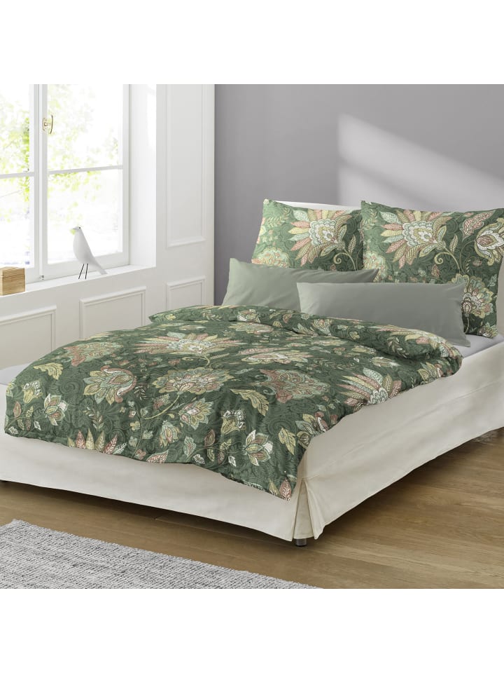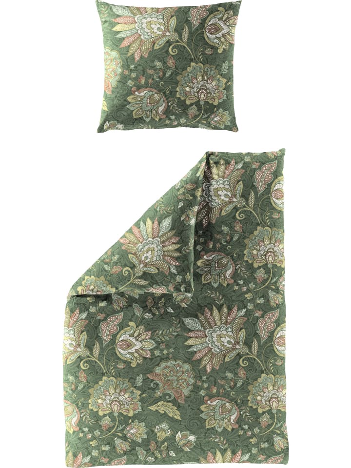 Фланелевое постельное белье зеленого цвета Bierbaum, 155 x 220 + 80 x 80 см