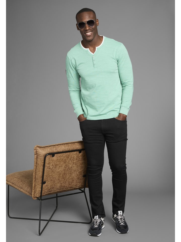 - Мягкая рубашка-хенли из хлопковой смеси для превосходного комфорта.