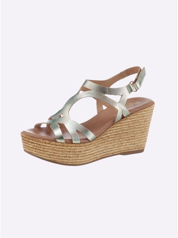 Босоножки на танкетке в золоте Heine