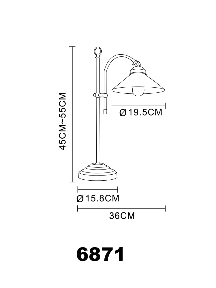 Настольная лампа, античный латунный металл, опаловое стекло, клавишный выключатель на проводе, регулируемая высота, ДxШxВ: 360x195x550 мм, без 1 лампы E14 40 Вт 230 В