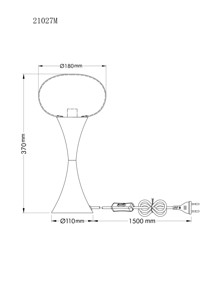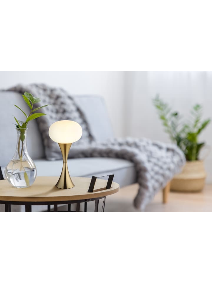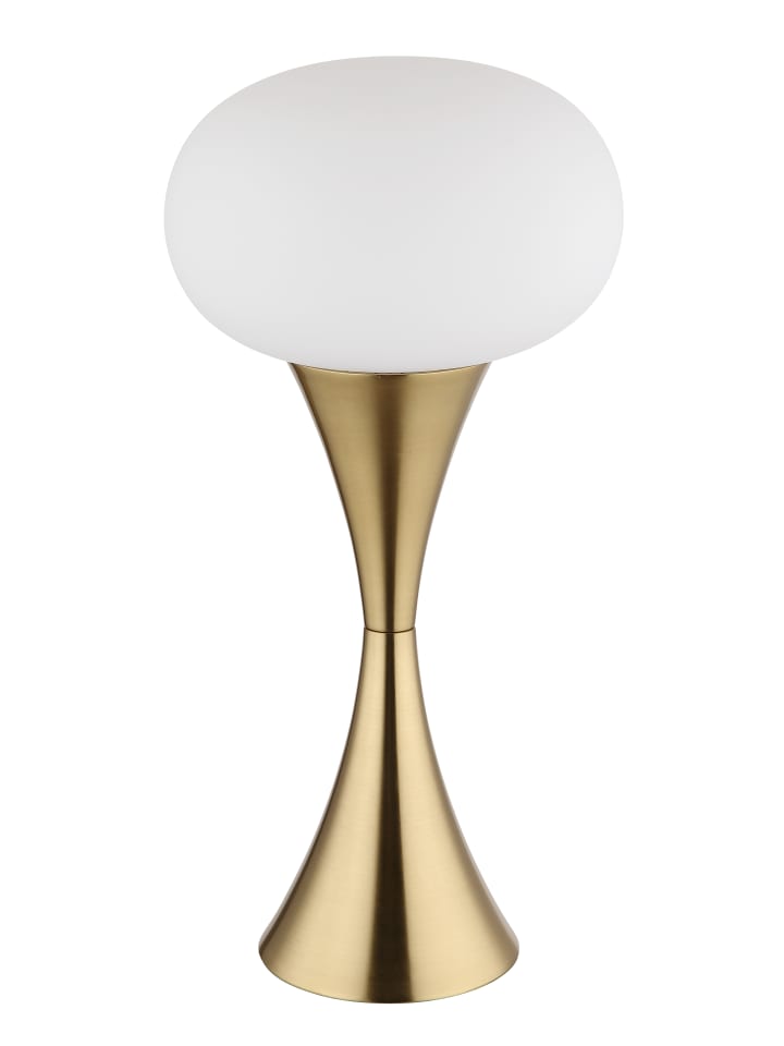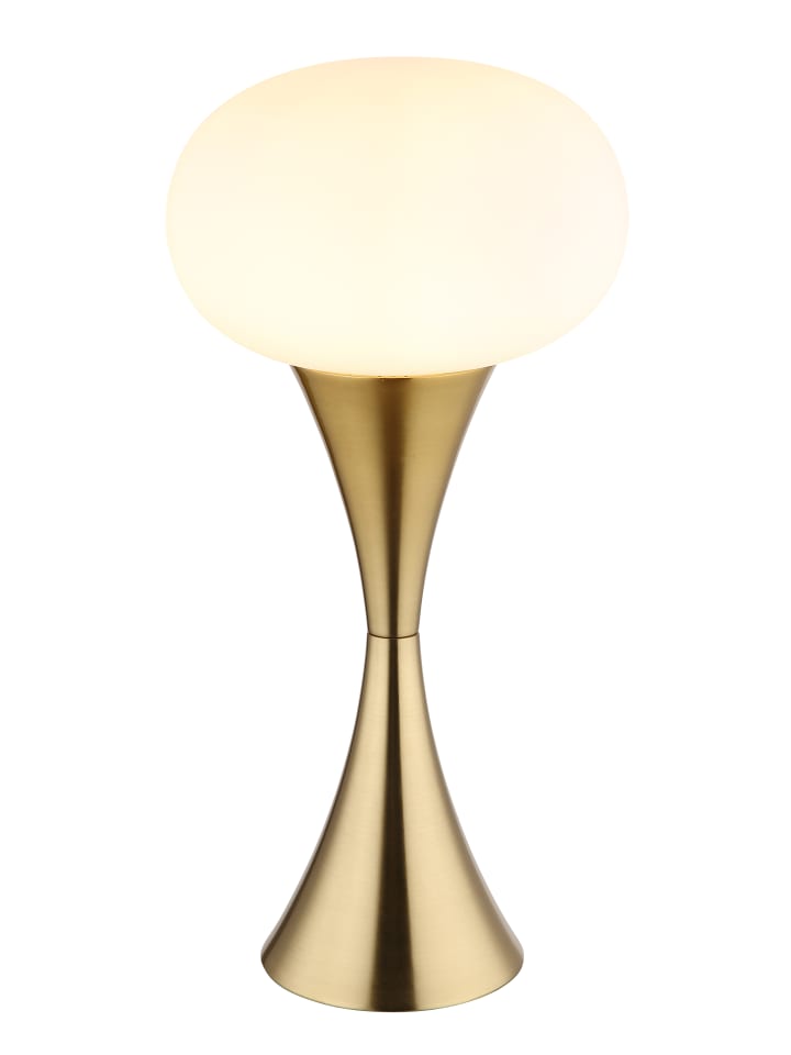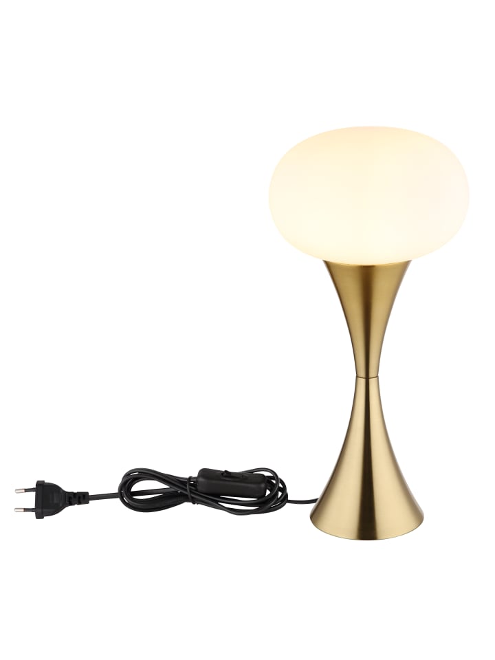 Настольная лампа, металл, матовая латунная отделка, опаловое стекло, черный кабель из ПВХ, клавишный выключатель на кабеле, ø: 180 мм, H: 369 мм, длина кабеля 1500 мм, без 1 лампы E14 25 Вт 230 В
